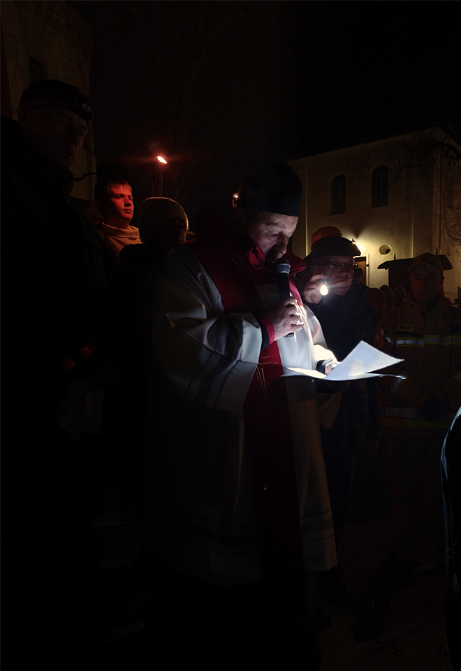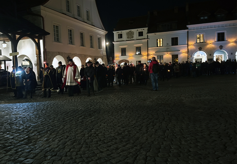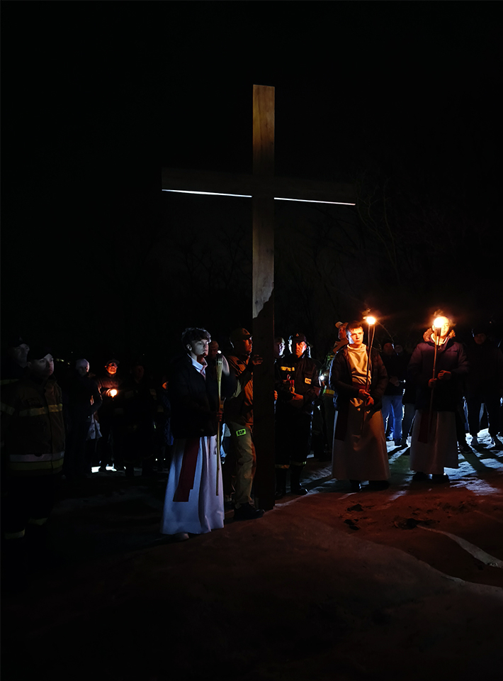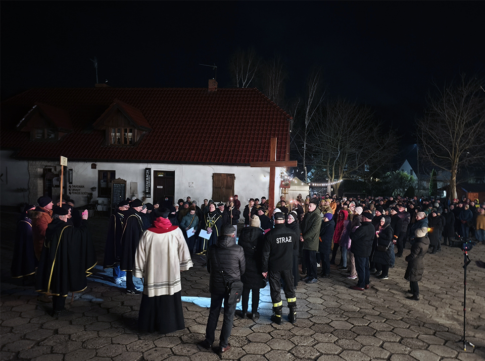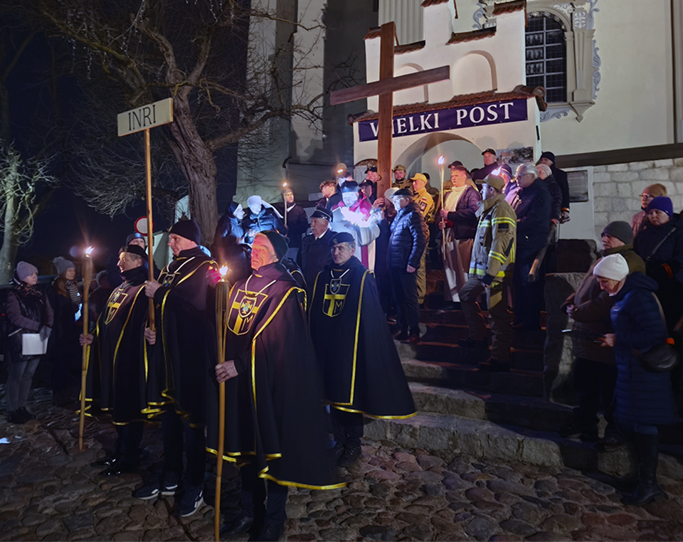 W piątkowy wieczór, o godz. 19:30, rozpoczęło się nabożeństwo drogi krzyżowej po uliczkach naszego miasteczka. Trasa wiodła przez Rynek, Mały Rynek, ul. Krzywe Koło, ul. Zamkową, a zwieńczeniem było wejście na Górę Trzech Krzyży. Przy każdej stacji przywoływany był fragment z Pisma Świętego. Po nim, oprócz rozważań, czytana była modlitwa. Bóg zapłać! wszystkim zaangażowanym w stworzenie tej wspólnoty modlitwy i przygotowanie tego nabożeństwa. A szczególne podziękowania dla przewodniczącemu drodze krzyżowej księdzu Proboszczowi.