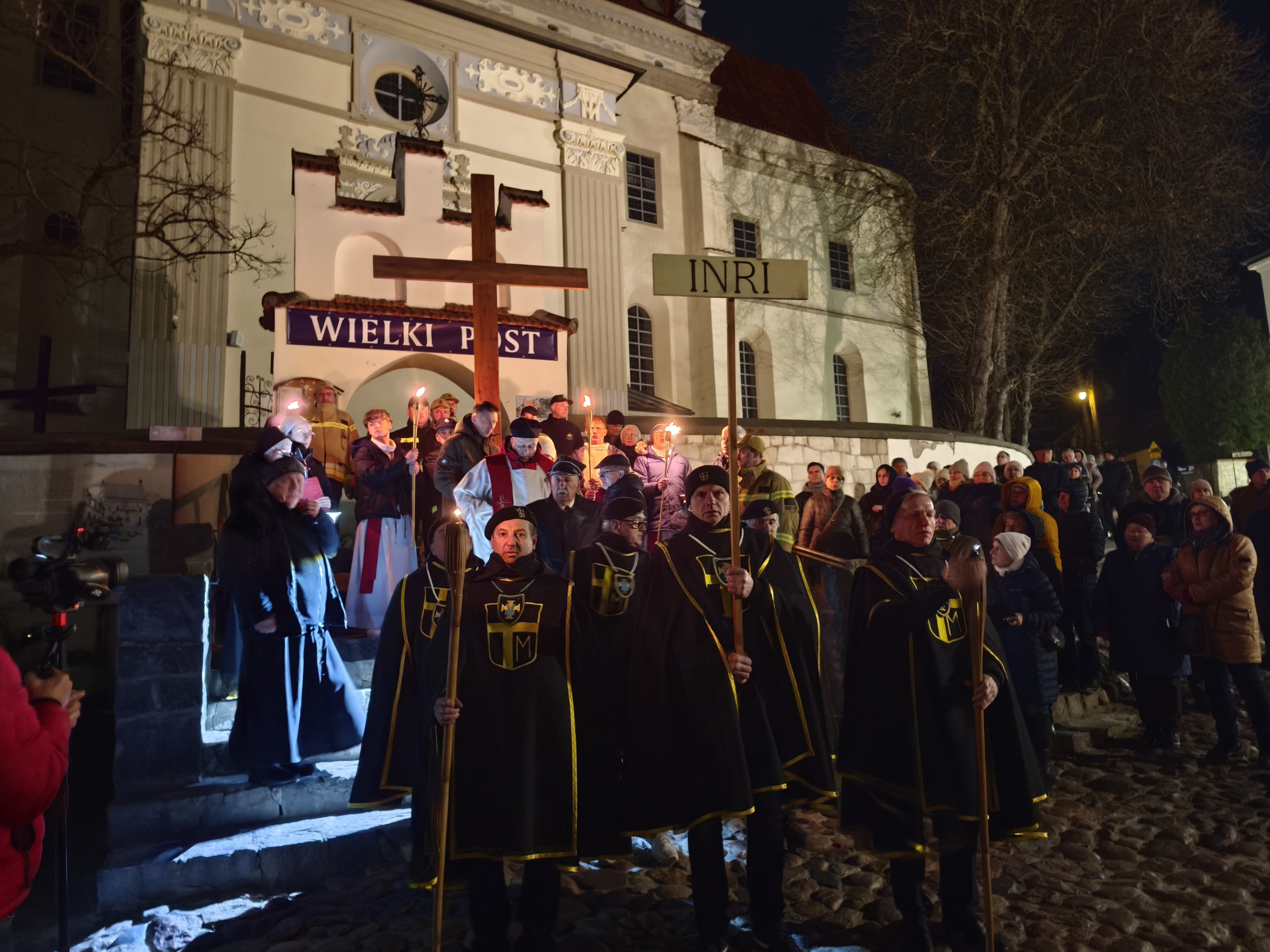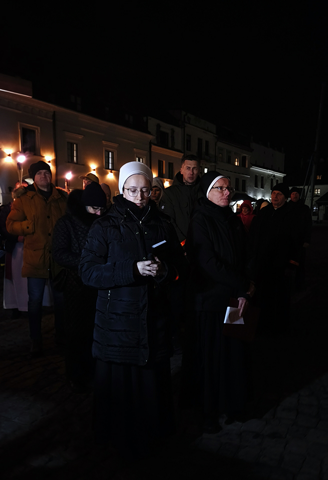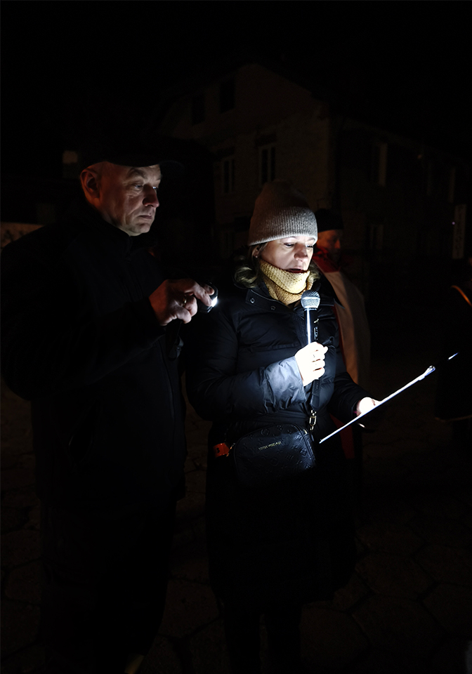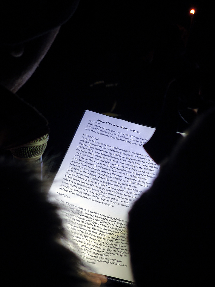W piątkowy wieczór, o godz. 19:30, rozpoczęło się nabożeństwo drogi krzyżowej po uliczkach naszego miasteczka. Trasa wiodła przez Rynek, Mały Rynek, ul. Krzywe Koło, ul. Zamkową, a zwieńczeniem było wejście na Górę Trzech Krzyży. Przy każdej stacji przywoływany był fragment z Pisma Świętego. Po nim, oprócz rozważań, czytana była modlitwa. Bóg zapłać! wszystkim zaangażowanym w stworzenie tej wspólnoty modlitwy i przygotowanie tego nabożeństwa. A szczególne podziękowania dla przewodniczącemu drodze krzyżowej księdzu Proboszczowi.
